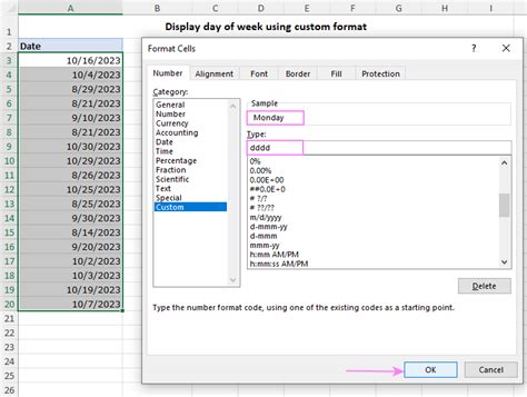 Excel Date Format Day Of Week. Firstly, the most common method to display the day of. On the home tab, click the dropdown in the number format list box, click more.