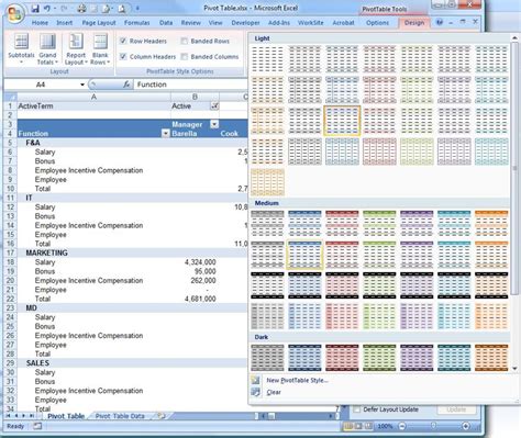 Formatting A Pivot Table. Creating a pivottable or pivotchart from worksheet data. Click anywhere in the pivottable to show the pivottable tools on the ribbon.