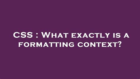 Formatting Context Css. Web a block formatting context is created by at least one of the following: The root element of the document ( ).