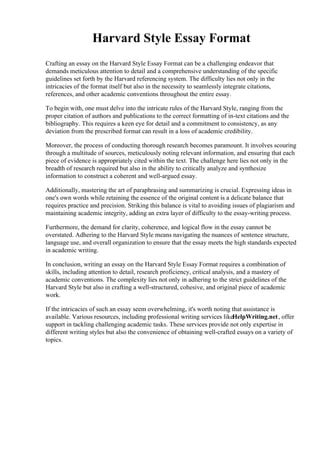 Harvard Style Essay Format. Harvard essay format is very specific and organized unlike argumentative essay. Revised on 15 september 2023.