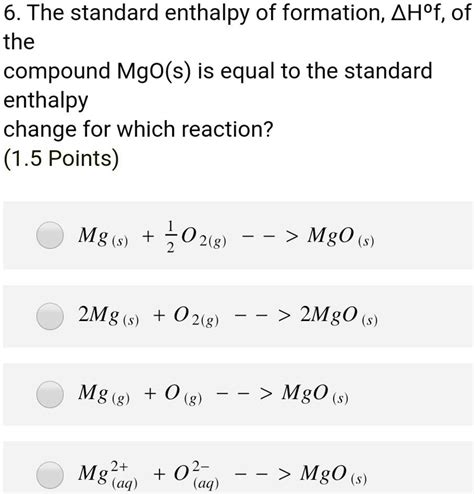Web data last reviewed in december, 1974. It has an empirical formula of mgo and consists of. Web finding the enthalpy of formation of magnesium oxide using hess' law. Mg(s) +2hcl(aq) mgo(s) +2hcl(aq) hx2(g) + 1 2 ox2(g) mg(s) + 1 2 ox2(g) mgclx2(aq) +hx2(g) mgclx2(aq). Web the standard (molar) enthalpy of formation, δ h o , is defined as the δ ho f rxn when one mole of a compound is formed from its elements in their reference form and in their standard states. Web data last reviewed in december, 1974. Web also, called standard enthalpy of formation, the molar heat of formation of a compound (δh f) is equal to its enthalpy change (δh) when one mole of a compound is formed at 25 degrees celsius and one. ° = a + b*t + c*t h° − h° = a*t + b*t /2 + c*t /3 + d*t /4 − e/t + f − h s° = a*ln (t) + b*t + c*t /2 + d*t /3 − e/ (2*t c = heat capacity (j/mol*k) h° = standard enthalpy (kj/mol) s° =. Web magnesium oxide ( mg o ), or magnesia, is a white hygroscopic solid mineral that occurs naturally as periclase and is a source of magnesium (see also oxide ).