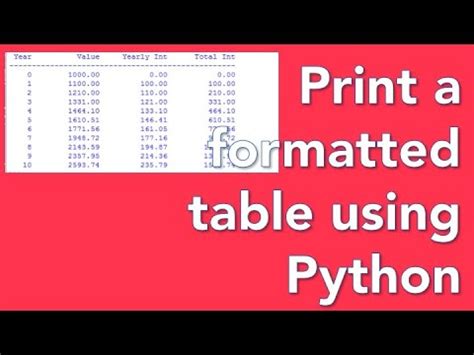 Python Print Formatted Table. Web use the pandas.dataframe () function to print data in table format in python. The first is string formatting with the format().