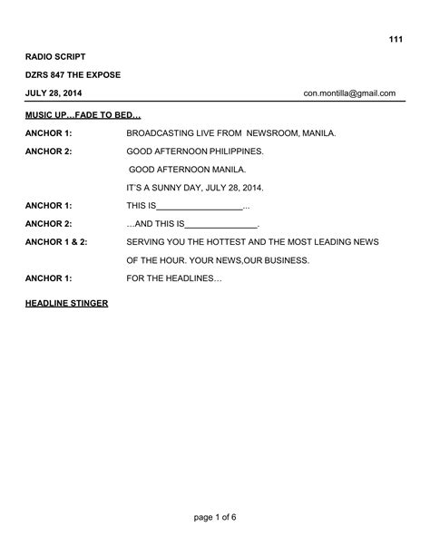 Web a radio play script follows a distinctive format that allows the playwright to convey how sound and music will be used in the. Web a radio play script follows a distinctive format that allows the playwright to convey how sound and music will be used in the. Web click here to see an example of a bbc radio play script.